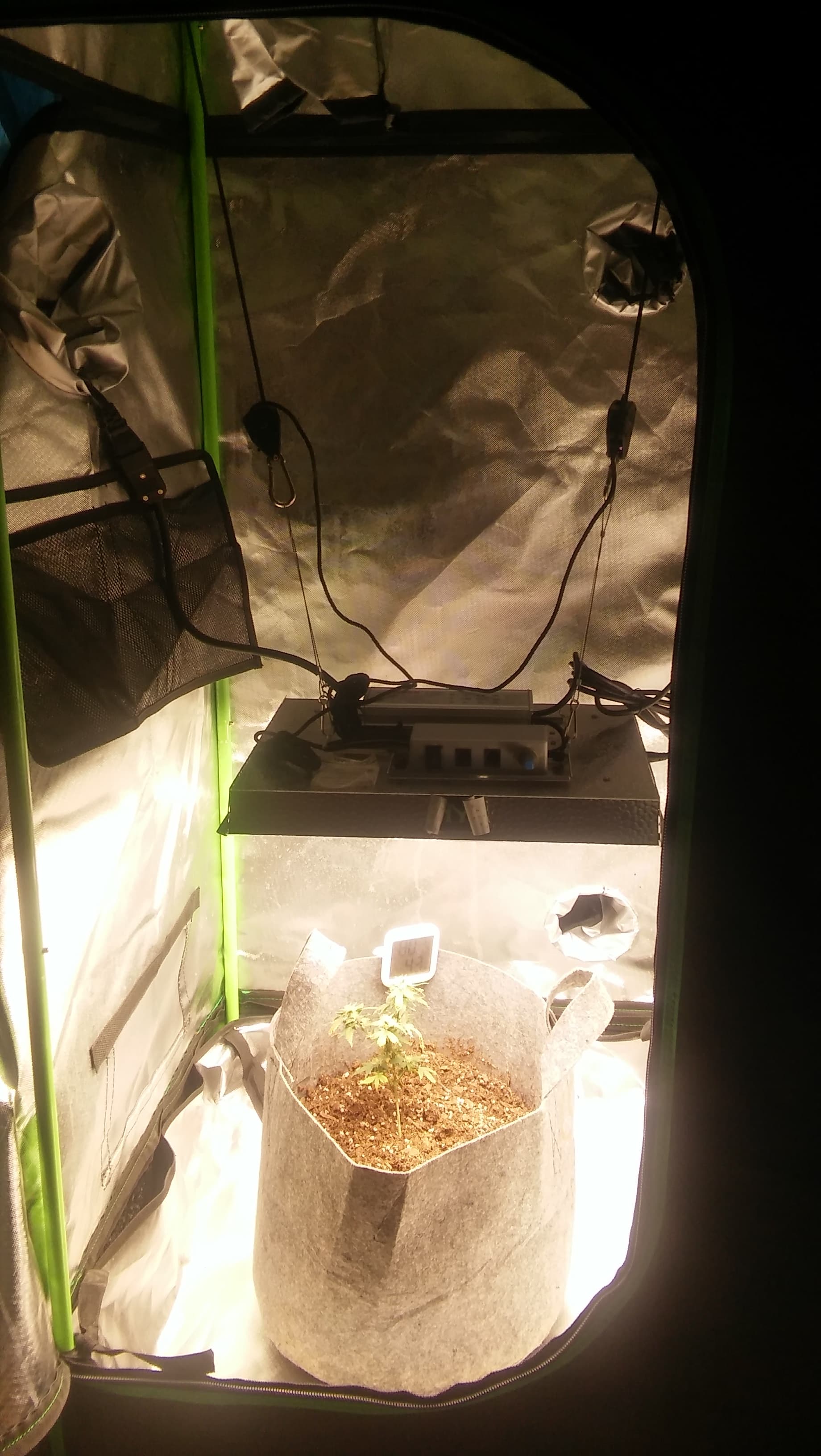 Good day to you all. If I’m correct this os week 9, maybe 10. Gotta check my log but CiCi is coming to an end also transferred in a new home for finishing flowers. The set up is a 3x3x48 also theres two sides to it. One will be used for drying. Also the light is a mars hydro led light, don’t know the watts cause it was gifted but I’ll look it up at some point. Not much on her but I know how she taste and she taste delicious so I may reserve her for the good old birthday.